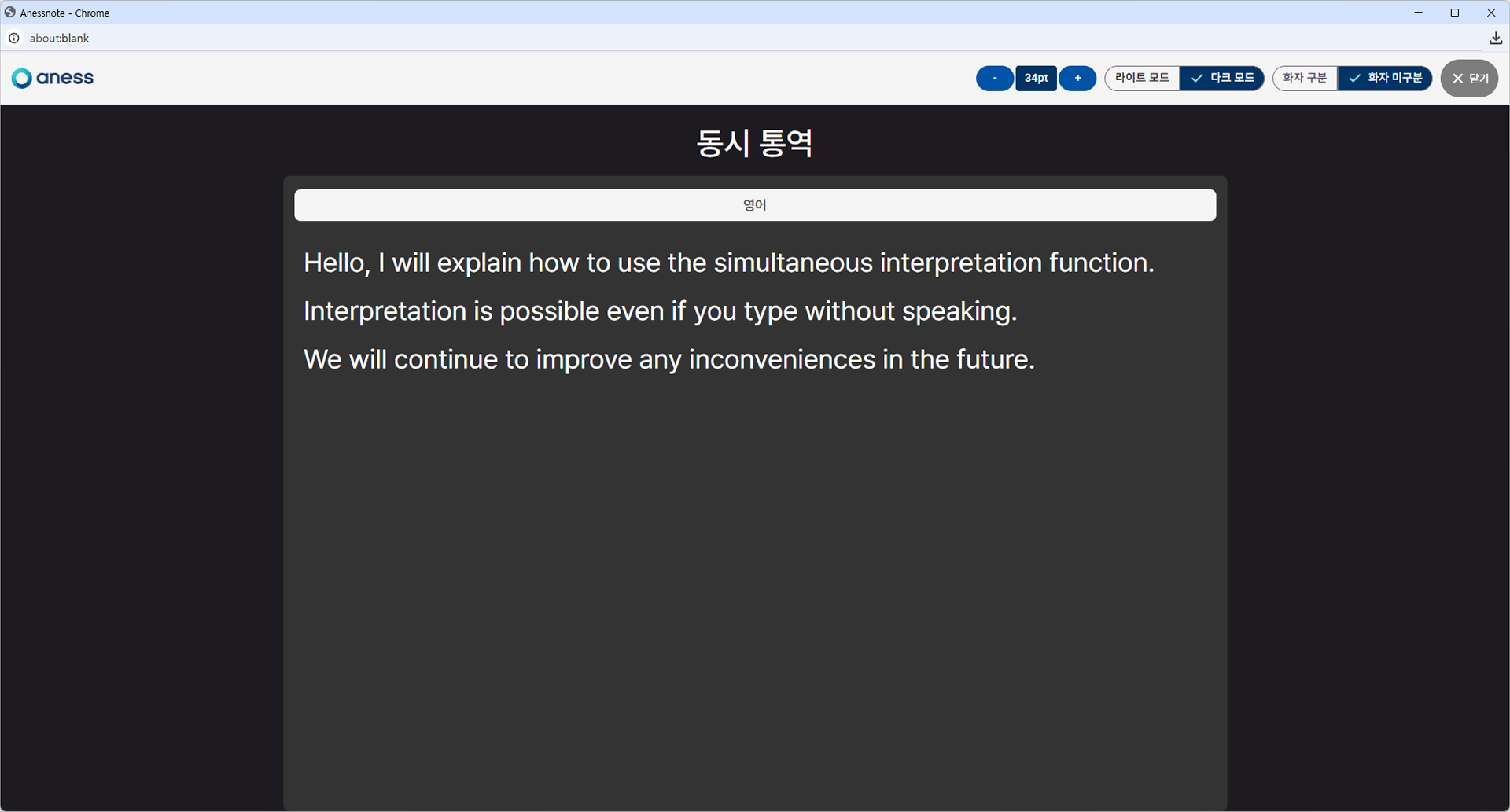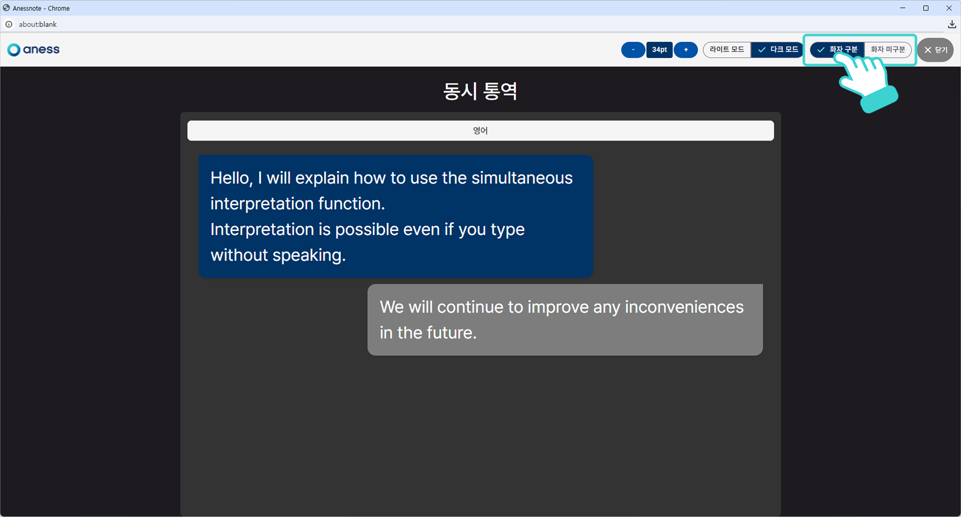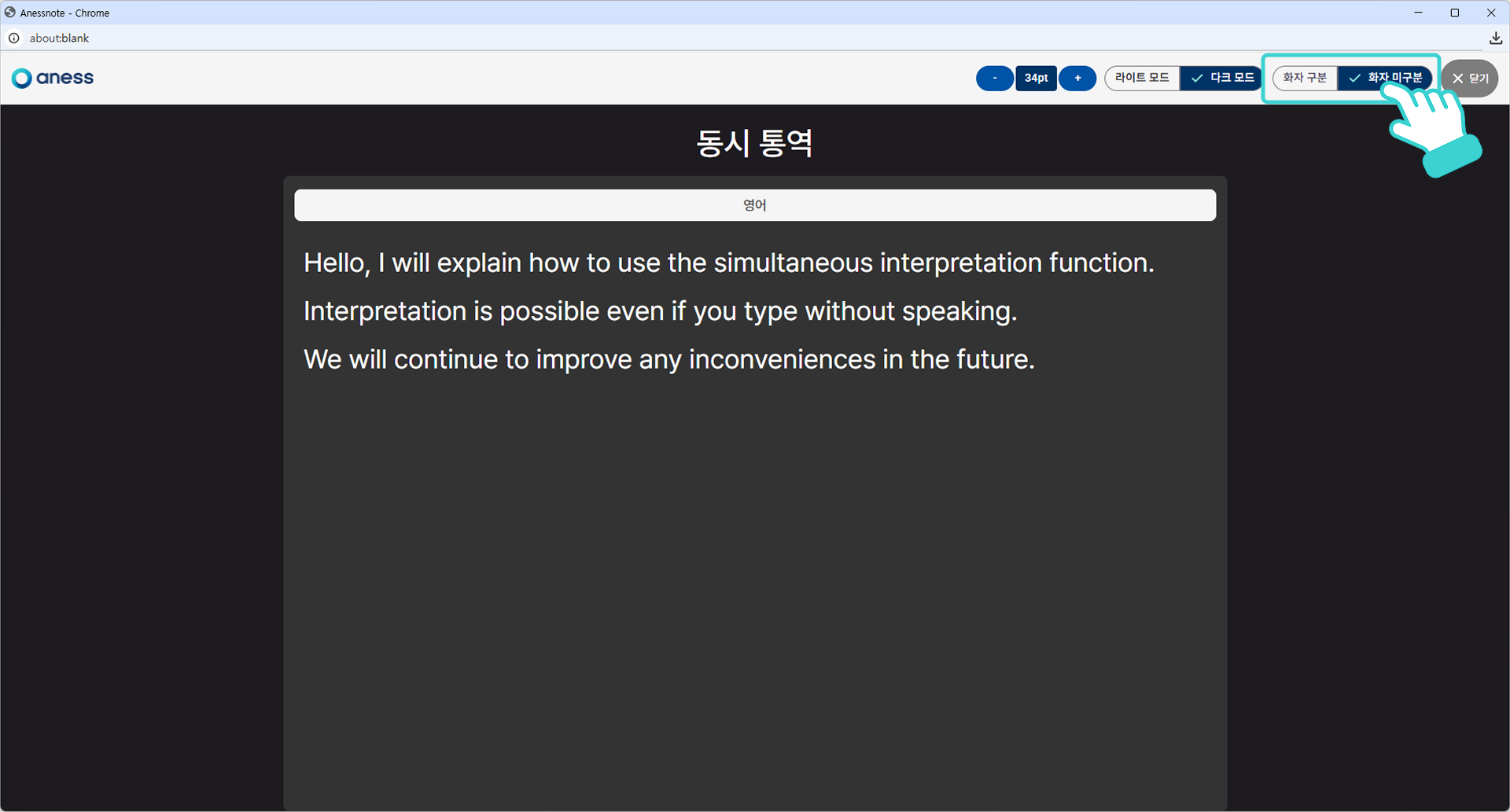 발화문 및 통역문이 화면에서 모두 사라집니다.