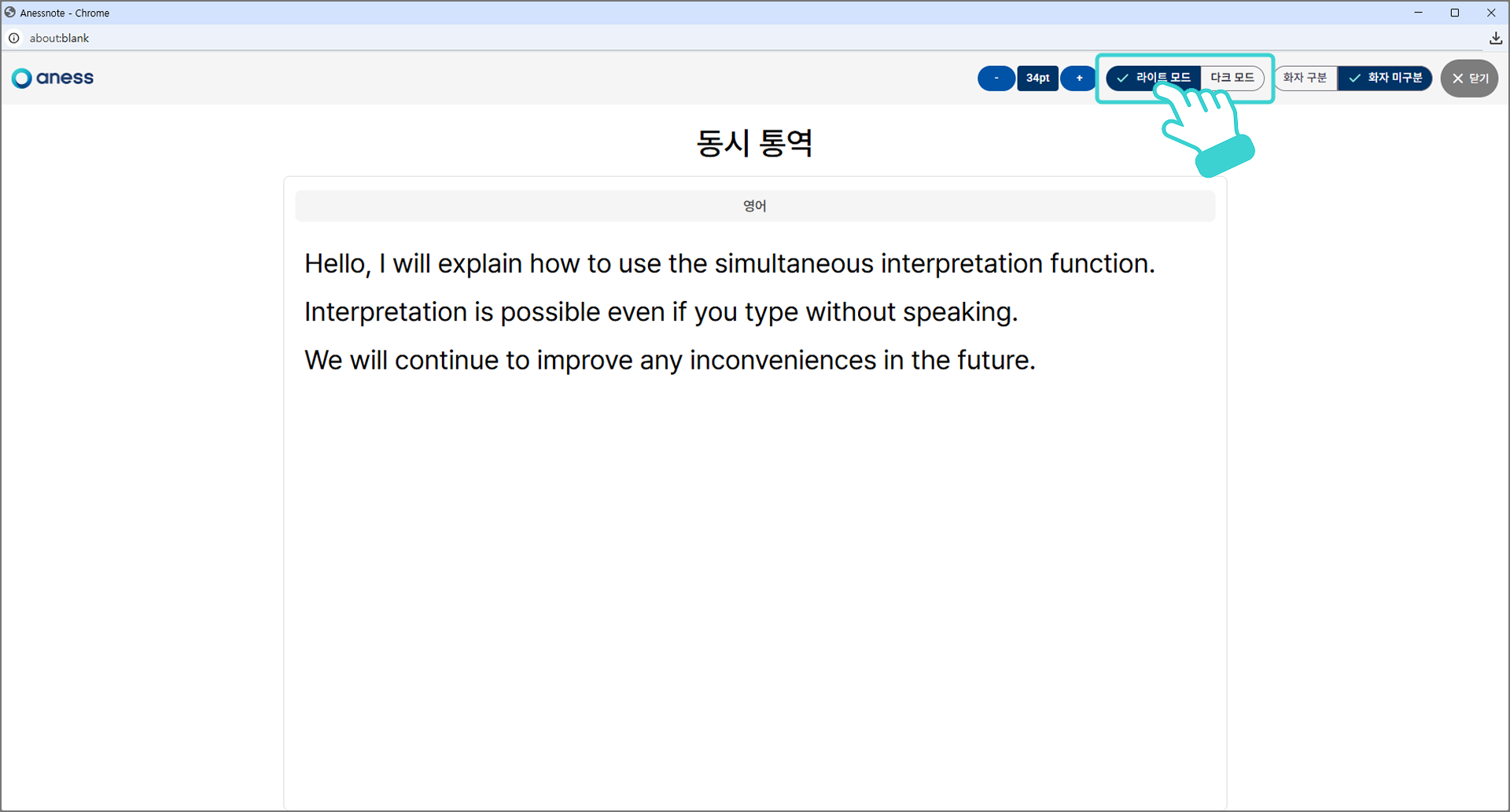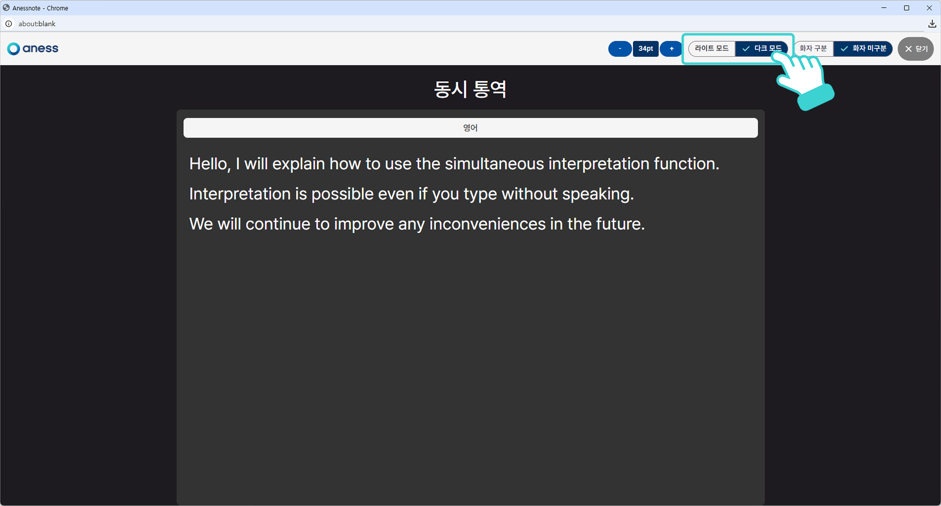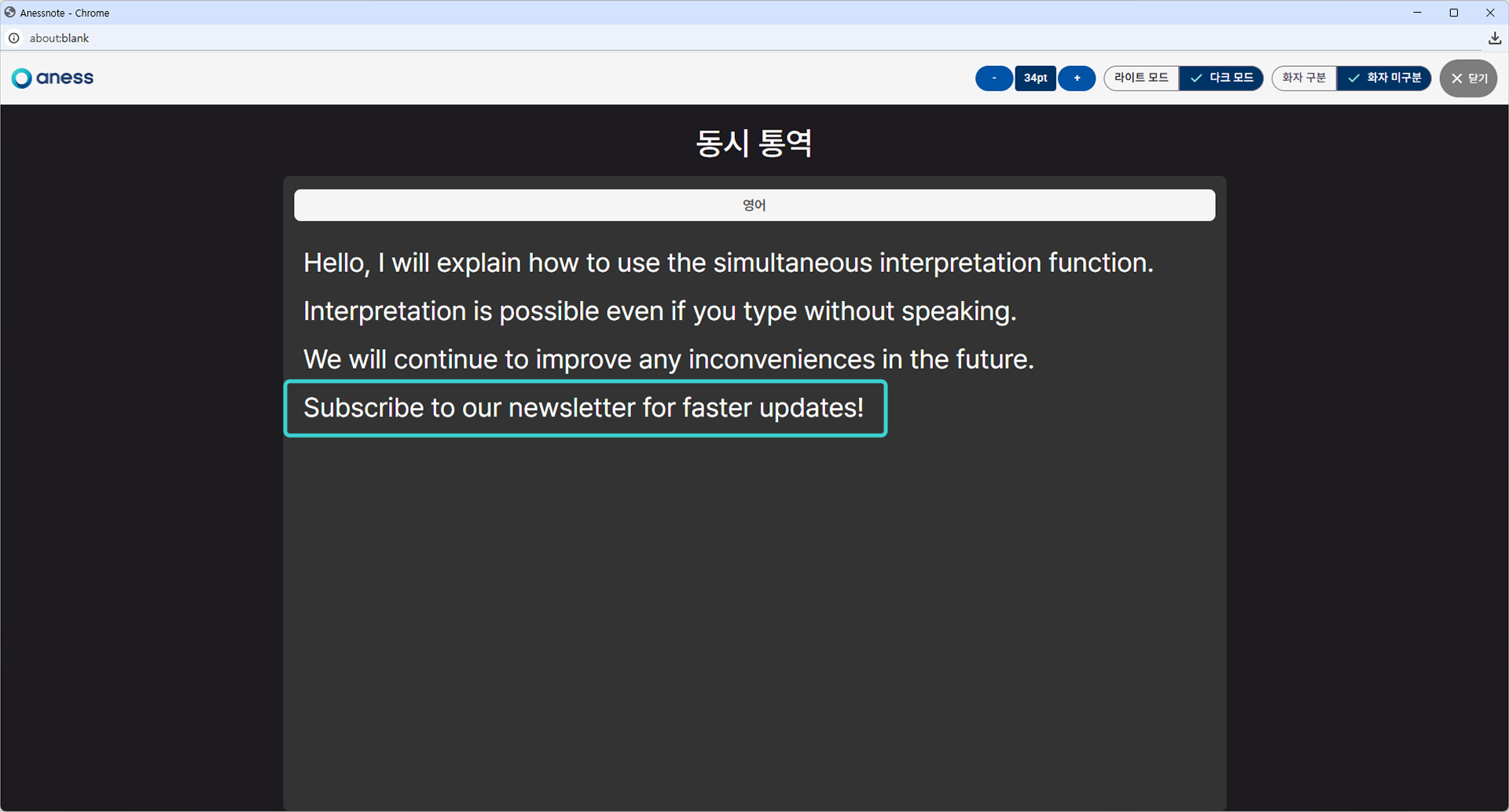 발화문 및 통역문이 화면에서 모두 사라집니다.