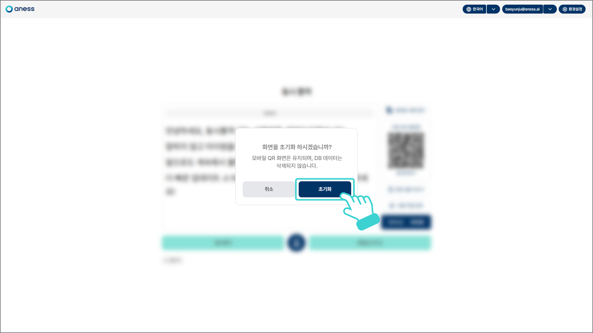 화면 초기화 여부 확인 팝업창의 [초기화]를 클릭합니다.