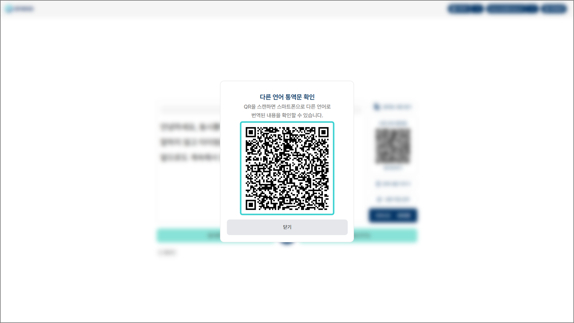 스마트폰으로 [다른 언어 통역문] QR을 스캔하여 접속하면, 언어 선택 단게에서 선택한 'QR 스캔 송출언어'의 통역문을 확인할 수 있습니다.