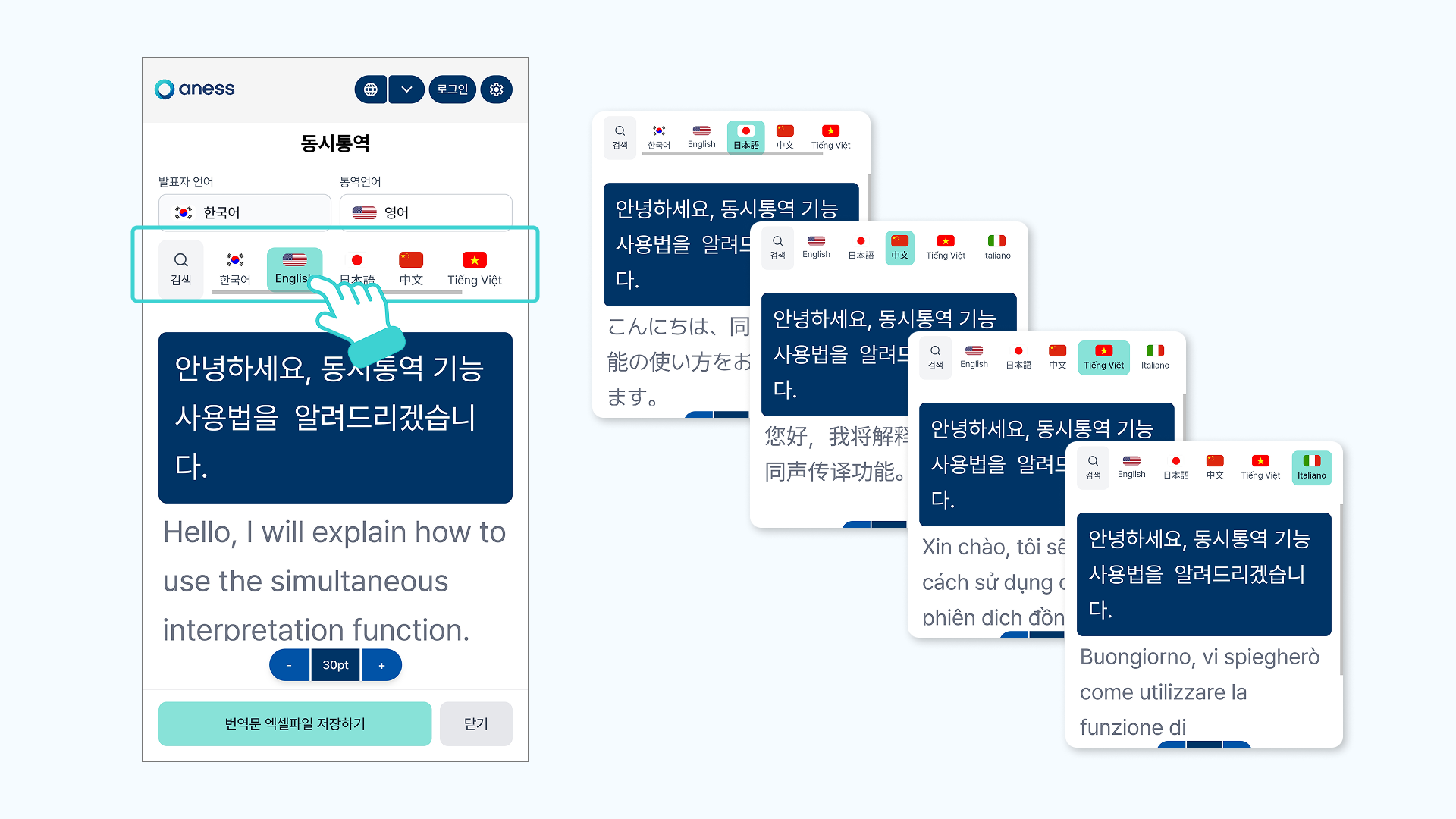 동시통역에는 발표자와 청중의 편의를 위한 다양한 기능이 준비되어 있습니다.