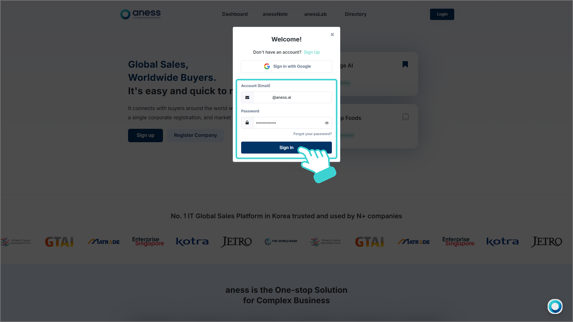 아네스 홈페이지에 접속, 우측 상단의 [Sign In]을 클릭하고 로그인 합니다.