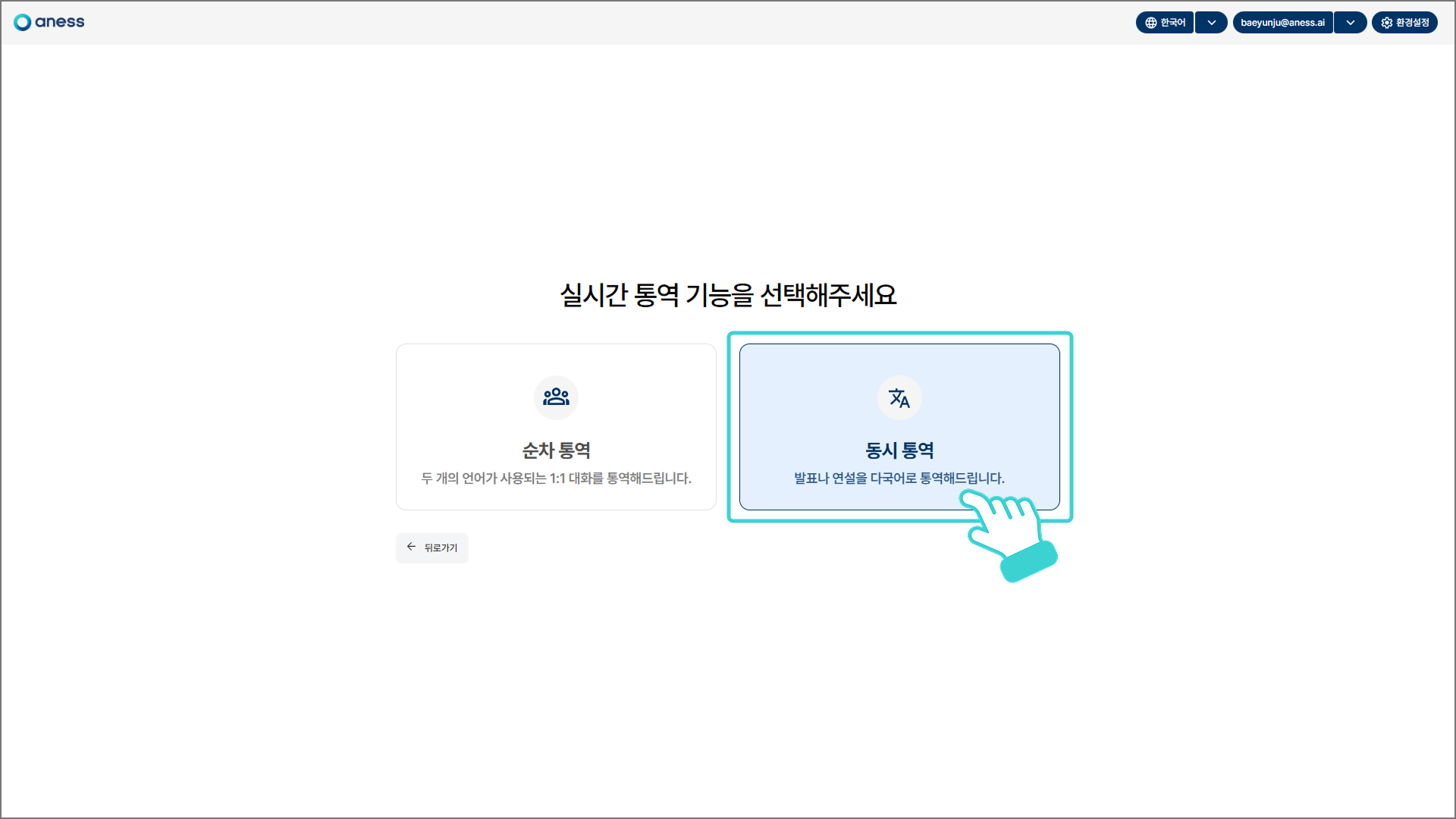 우측의 [동시 통역]을 클릭합니다.