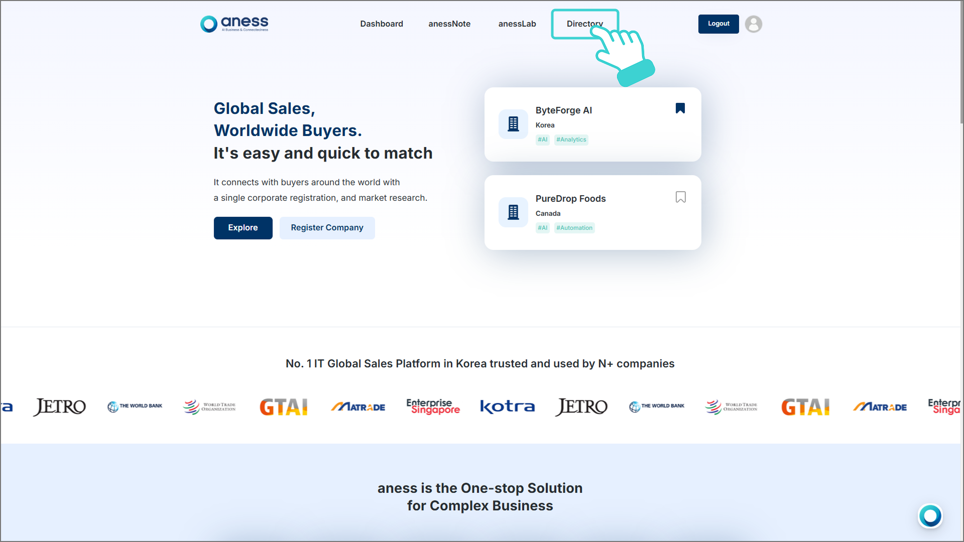 아네스의 디렉토리는 아네스에 등록된 수많은 해외기업의 정보를 탐색 및 수집하고, 기업 담당자와 직접 연락할 수 있는 공간입니다.